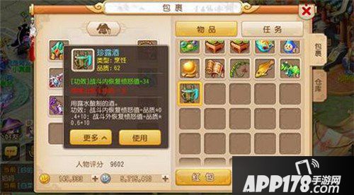 对于图中这个62品质的珍露酒来说,假如严格按照计算公式走的话,应该增加62*0.4+10=34.8的愤怒,而在游戏系统里,这里会把非整数的部分直接抹去,而不是四舍五入。