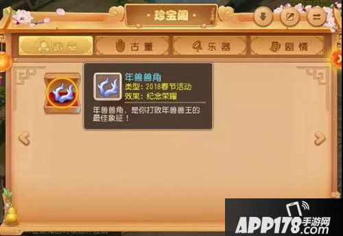 大家战胜三星星级后,可以获得年兽兽角碎片,5个兽角碎片可以合成1个年兽兽角,今年的兽角依旧可以放入个人的珍宝阁中珍藏~(大家别忘记给经常给兽角晒晒太阳~)