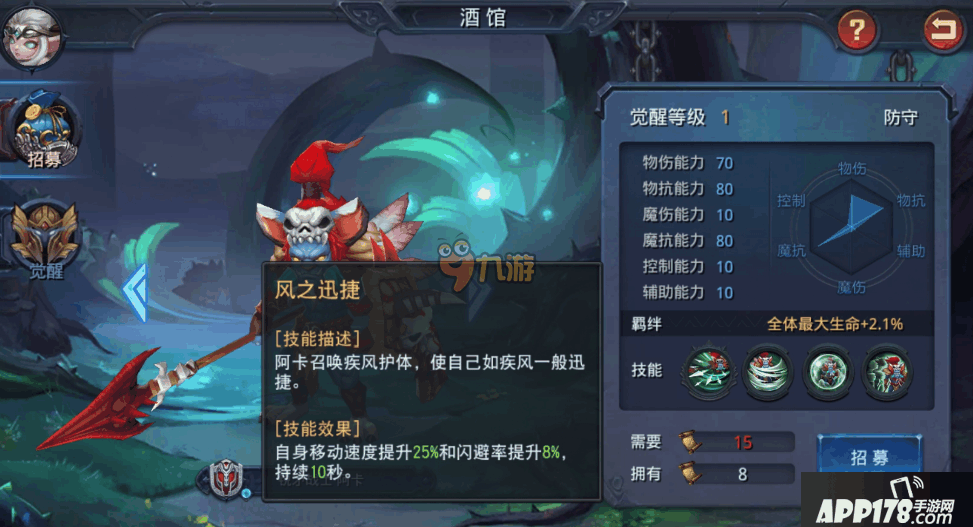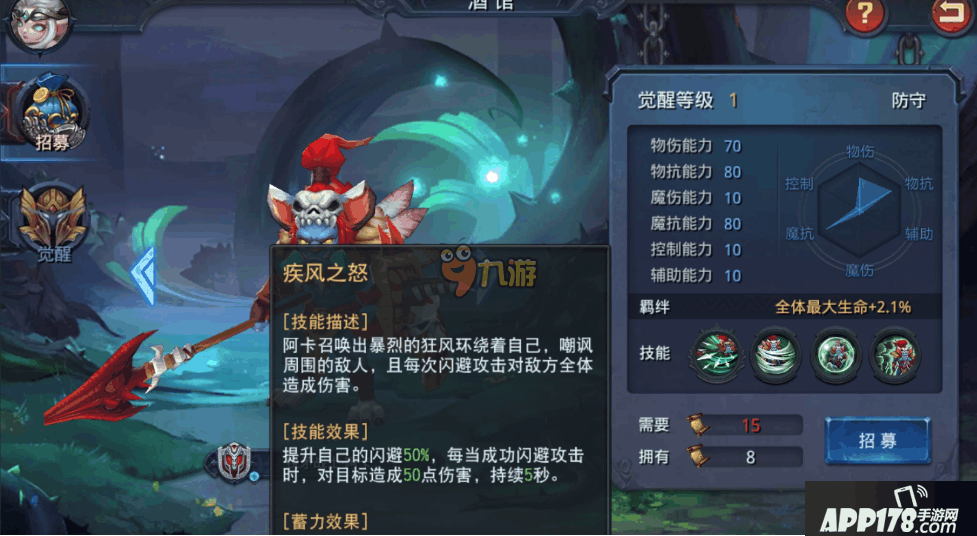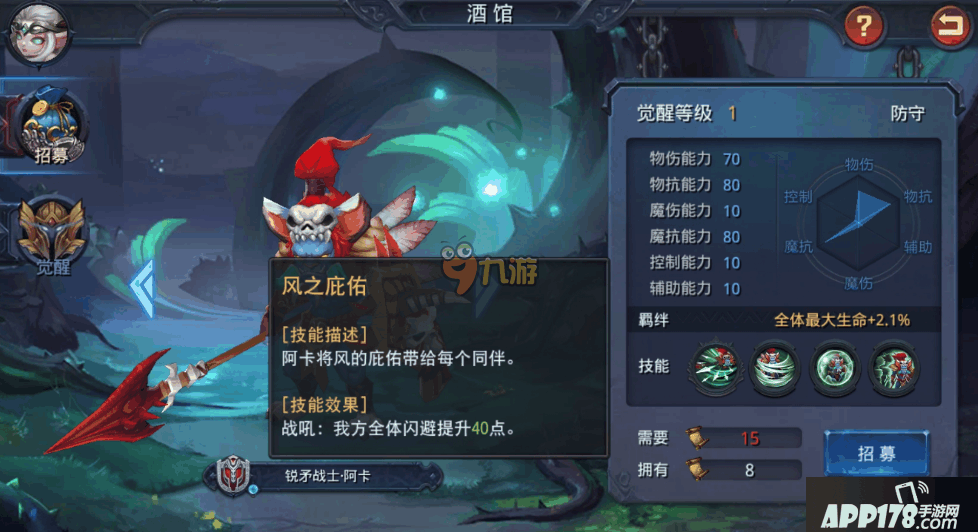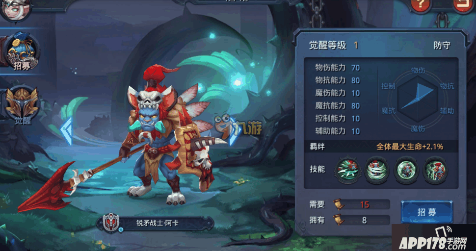 在迷雾世界中提起物理防守型英雄可能很多小伙伴都会知道锐矛战士·阿卡吧,对比起其他的肉盾高血量高的英雄,阿卡在闪避上会更加的有优势,同时在治疗效果上也是不错的,但是有很多小伙伴对这个英雄的属性和技能都不是很了解,那么下面就和APP178手游小编一起去看看迷雾世界阿卡属性技能介绍吧!