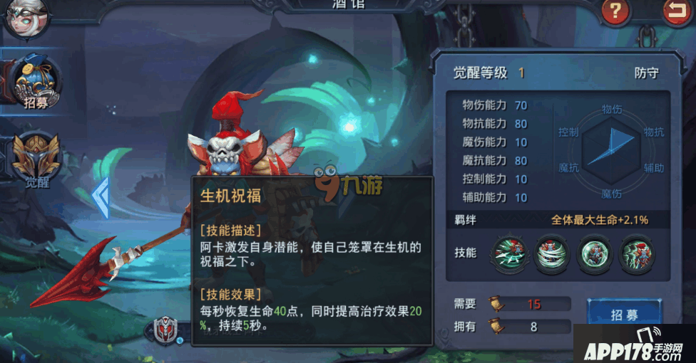 技能描述:阿卡激发自身潜能,使自己笼罩在生机的祝福之下。