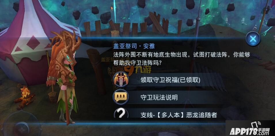 首先,我们进入盖亚通道,找到盖亚祭司•安雅,领取守卫祝福,领取祝福之后在守卫过程中可以获得更多奖励; 每天只能领取一次守卫祝福,领取完祝福之后就可以进入盖亚通道深处,寻找“盖亚守卫”,与他们进行战斗了。