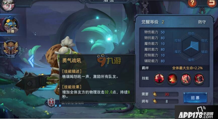 勇气战吼:格瑞姆怒吼一声,技能所有队友。