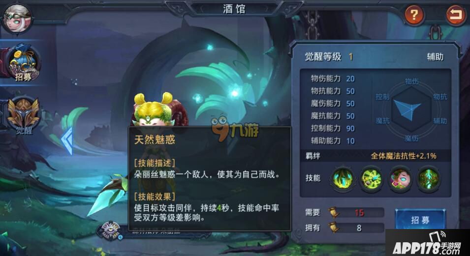 天然魅惑:朵丽丝魅惑一个敌人,使其为自己而战。