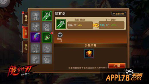 消耗打星石和低一品质的同部位装备打星,也可以为角色带来更多的附加属性。打星石和低一品质的同部位装备都可以通过多途径获得,装备最高能打到五星呢!