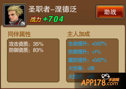 主角加成成长:在各项属性的成长上比较平均,无论前期还是后期都能发挥作用;涅德泛提供魔防提升在面对鬼手和魔法型Boss时有更强的防御效果。 - 评分:3星。总评价:3星。