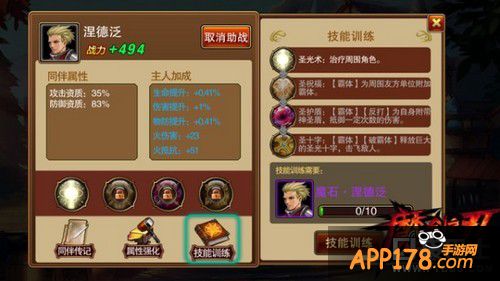 以这个涅德泛来做个案例吧,它的技能是治疗与保护这两个方面,而你组队中,它的出现正是合适,与有着攻击与防御的那些战将搭配着使用,这个也是必须的。“营地”中可以查看伙伴传记、强化属性。