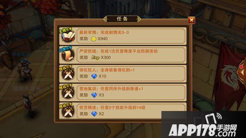 任务系统是整个游戏的核心,尤其是前期,新手玩家只要跟着任务走就能很快收悉游戏的玩法和一些界面功能,也能快速升级。魔剑之刃的任务系统和一些常见的游戏一样分为三大块:主线任务、日常任务和挑选任务。主线任务能获得大量金币和一些装备碎片等物品;日常任务能获得经验奖励和魔石等物品;挑选任务能获得钻石和装备碎片等物品。前期还是以主线任务为主,完成新手系统引导后我们可以根据自身战斗力完成一些挑战任务,日常任务完成次数是有限的,记得每天完成。