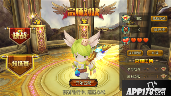 巅峰对决是每周2/4/6晚间定时开放的PK活动,玩家可选择新手、精英、宗师三种场进行比赛,但是请注意,每个人只有三次失败机会,次数用尽者出局!剩者为王,请珍惜每一场战斗吧,常常有实力自信到“托管”的勇者,被不知名的对手操作至死的哦!