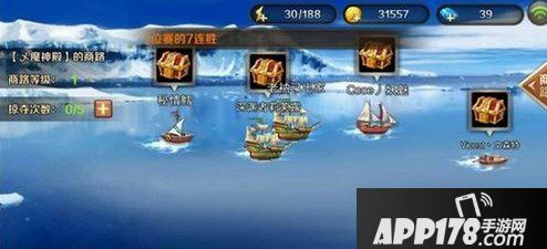 船只决定海商可以获得的经验、圣魂、水晶、金币已经奖励等越大的船,获得的奖励就越多。另外大船可以带回来宝箱,宝箱中可以获得传说中的圣物哦。没有公会的玩家可以进行公共路线,而有公会的玩家可以进入专属公会的海商路线,公共路线不会被抢夺。而公会路线可以抢夺的。商路的等级越高,公会中可参与的海商玩家就越多,对于圣魂的加成也就越多。参加海商的玩家的女神开启个数将会决定对水晶的加成。