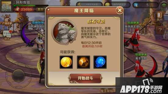 之前小编也给大家介绍过了,这个玩法一共有三个魔王在不同的时间段中降临,每一个魔王奖励的东西不同,想要宝物,那么就要击败他们。