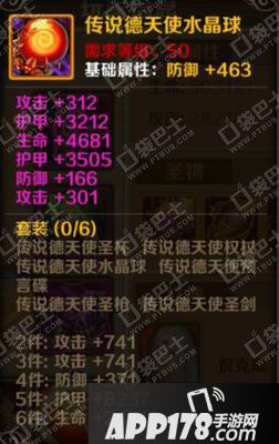 图中可以看出,当玩家们集齐6件传说德天使圣物后除圣物的基础属性和洗炼属性外额外会增加1482攻击、371防御、8237护甲和24710的生命。作为游戏中路西法的最强圣物,传说德天神绝对值得玩家们入手,