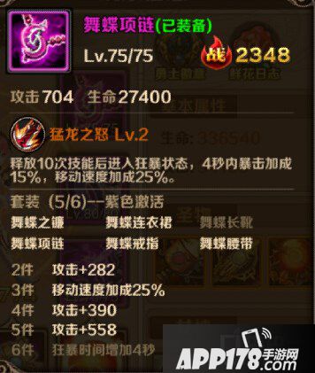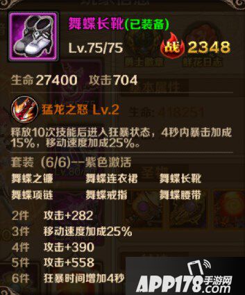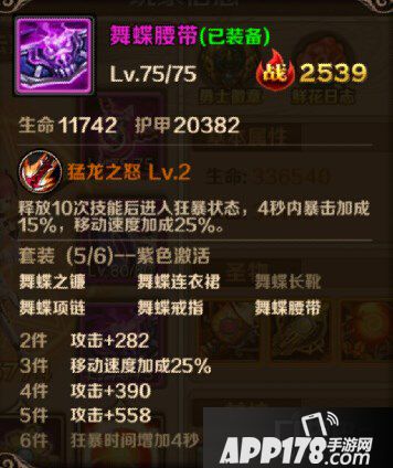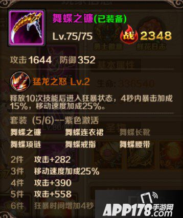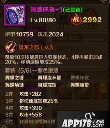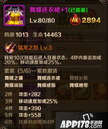 舞蝶装备是目前安妮最好的装备,无论是PK还是刷图中的表现都极为出色,玩家可以利用舞蝶套装的移动速度在PK中更好的走位,而特有的暴击在刷图和PK中的作用也不小,特别是6件舞蝶后狂暴时间延长4S,再加上本来的4S,当装备特效触发后,安妮拥有8S的时间可以进行极限输出,如果在PK中恰巧在此时打了对手一套基本就稳稳带走了,刷图时遇到难打的BOSS也可在狂暴时间内迅速斩杀。
