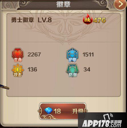 以上就是小编带来的魔龙与勇士徽章升级攻略,玩家们预知更多游戏中的资讯与攻略,敬请关注APP178手游《魔龙与勇士》专区,我们期待着您的到访。