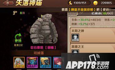 巨石泰坦是魔龙与勇士失落神庙中的一大BOSS,由于巨石泰坦的挑战难度为困难,所以玩家们即使拥有巅峰属性也很可能被巨石泰坦击败,由于巨石泰坦会掉落太阳之神这张橙色神卡,所以玩家们必须要成功将其击杀,下面小编带来了魔龙与勇士安妮单刷巨石泰坦攻略,一起来看看吧。