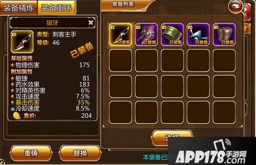 看过了精炼,我们再来看看游戏中的装备重铸功能。