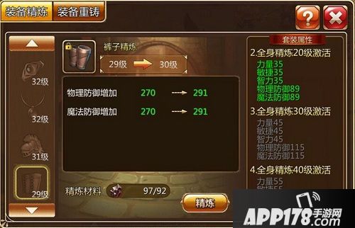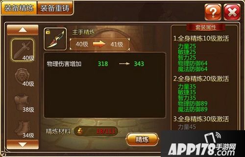 当全身部位均精炼至相应的等级时时,角色会获得额外属性奖励以及装备散发出酷炫光辉。