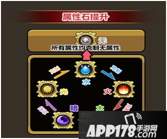 属性石分为水、火、木、暗、光五种,克制关系为水>火>木>暗>光>水,且均克制无属性。