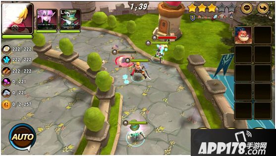 游戏采用常见的虚拟摇杆+触屏技能的方式进行操作,战斗过程中可选择手动或托管,随时解放双手。