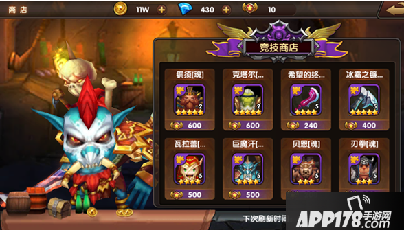 3、各种商店的商品刷新功能,需要使用一定数量的钻石。通过使用钻石刷新,能够更快更好的看到想要的商品,从而快速获取之。