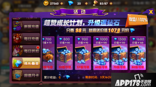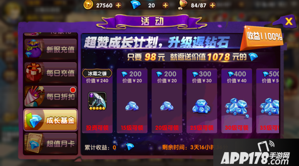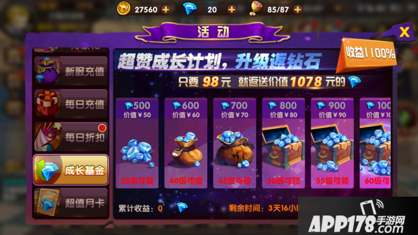 对于持久战的玩家,肯定要买这个,通过截图可以看到给的钻石是相当给力的。每隔5级就可以领取一次,等级越高领的越多。还送5星武器,5星武器在游戏中比较难获得,所以上来送一把5星装备,然后你懂的,直接可以切菜啦。