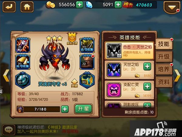 灵魂剥夺者的成长极为出众,毕竟S级英雄的身板在那里摆着,优先升级和强化他准没错。不过这个英雄的短板也非常明显,缺乏控制能力,所有技能当中无一控制型技能,属于一个纯后排爆发输出型的英雄,推图绝对最佳首选。由于获取难度上的限制,灵魂剥夺者其实是有些遥不可及的英雄之一,最快速的获取方式就是酒馆十连抽,同级别的S级英雄都还不错,所以如果你还没拿到灵魂剥夺者,那么去着重培养一名A+的法系输出其实也不错。