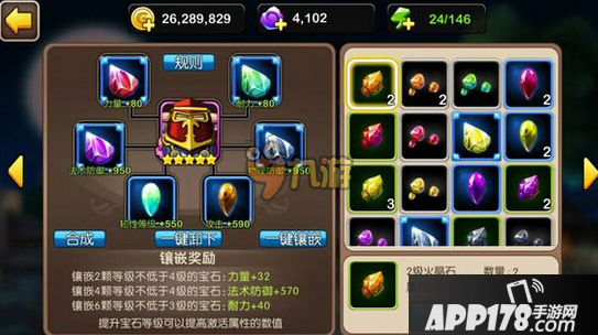 B宝石合成的方式:2颗同样的宝石百分百合成一颗更高等的宝石。