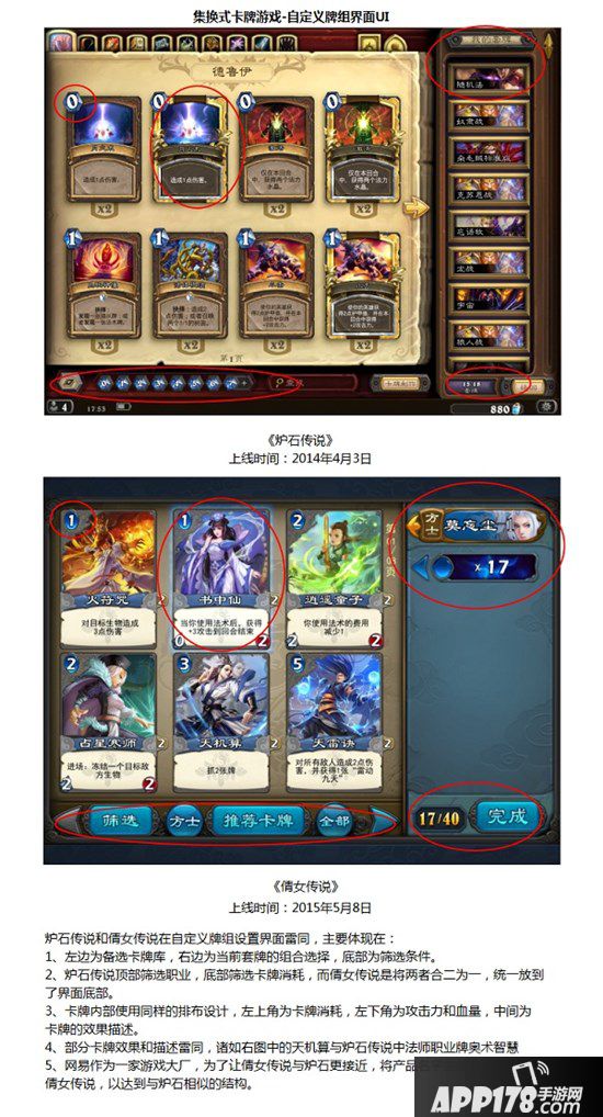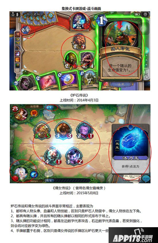 第二组截图,就更有意思了。网易代理了暴雪公司《炉石传说》,在国内用“UI界面独有”的理由起诉了一个相似手游《卧龙传说》。