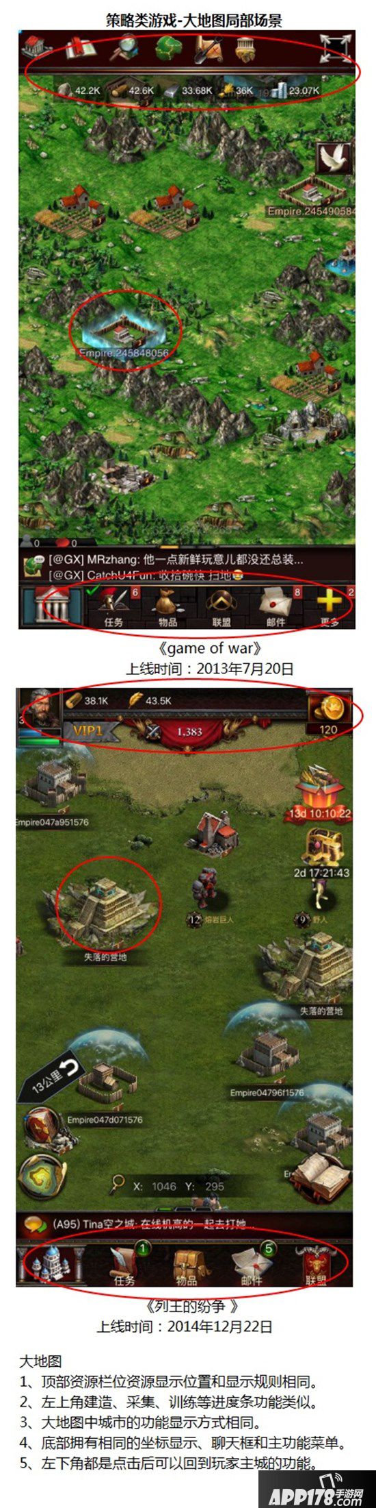 3、还有请参考下面两组截图,如果全世界游戏开发行业共识:“游戏玩法和UI布局都是可以被保护,可以起诉”,那为什么很多看上去像双胞胎的游戏(都是鼎鼎大名的游戏)之间没有发生诉讼和投诉?