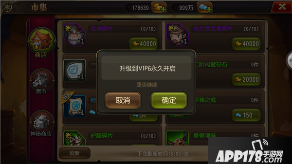 2.当然如果想要买到更高品质的符石以及英雄灵魂石那么黑市、神秘商店是个不二的选择,开启黑市或是神秘商店也是需要达到限制条件,黑市为VIP6永久开启、神秘商店则为VIP11永久开启。