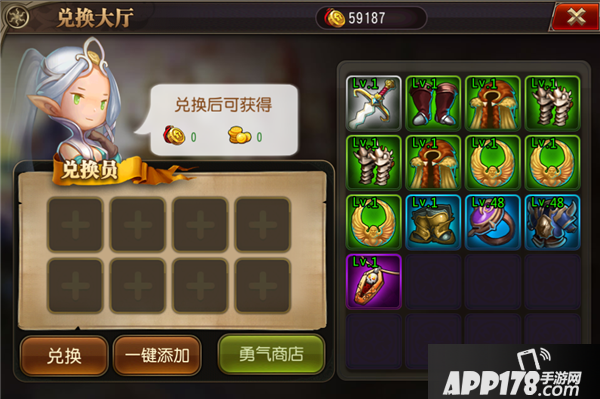 通过主界面进入后,可以将多余的装备进行兑换。兑换后可以活动金币以及熔炼值。