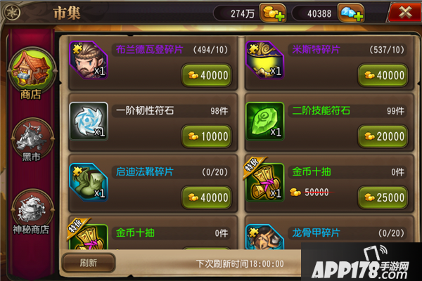 系统每天会有固定的刷新时间,黑市与神秘商店需要到达指定VIP才能开启,并且黑市与神秘商店当等级达到要求后可以刷新出橙色装备。绝对是高玩的首选。