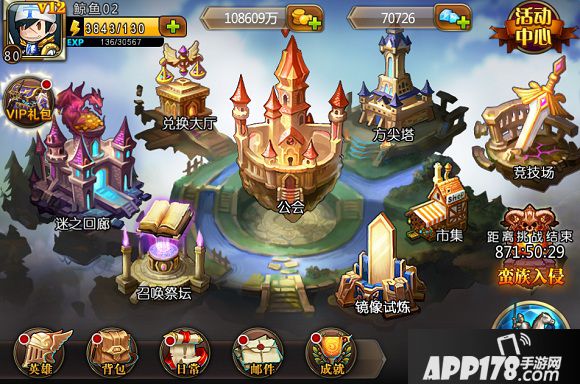 在所有能进行强化操作的地方,界面上都会出现一个红色圆点进行提示。首先对该英雄进行升级操作,英雄的能提升的最高等级为人物的当前等级(即若人物当前为10级,在升级药水足够的情况下,英雄等级最高能提升至10级)。那么问题来了,等级经验药水从何而来呢?游戏中可通过完成镜像试炼获得,同时通过出征及完成任务也能获得哦~~