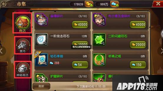 商城里面能用购买到你梦寐以求的英雄卡牌碎片、高级装备、宝石、道具。下面小编针对装备、宝石、道具三个板块和一个进入步骤,给各位介绍并讲解一下商城系统: