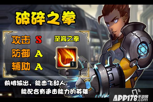 破碎之拳有很高的单体输出能力,怒气技能的必定暴击效果十分的强力,主动技能在配合冰冻以及石化效果的情况下,也可打出高额伤害,被动技能增加攻击力,很好的提高了他的输出能力。