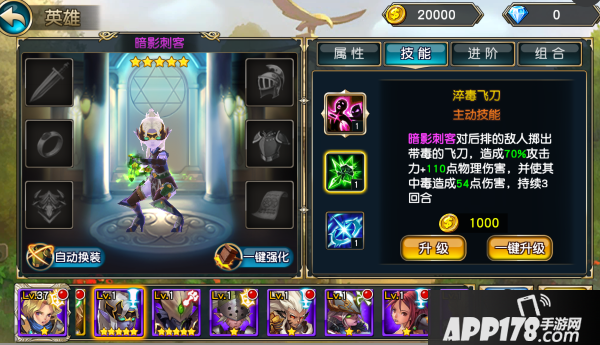 暗影刺客的粹毒飞刀,在第一回合就会释放,如果输出足够的情况下,能够秒杀后排一个脆皮。效果相当可观。