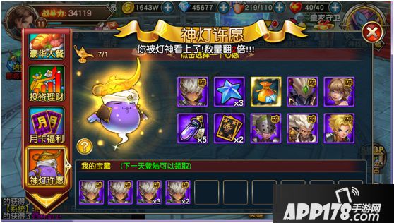 大家可以消耗“神灯”,来向小灯神祈愿,选择想要的道具。