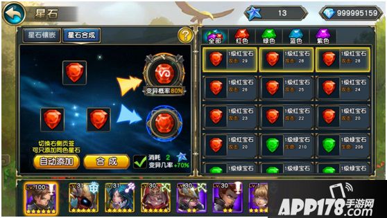 在合成的时候,星石会有一定几率产生变异,会出现增加额外属性的情况。在合成过程中使用幸运星,可以提高产生变异的几率,变异星石比普通星石更为强力,大家一定要记得优先使用哦!
