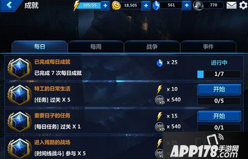 成就任务中每日任务都有赠送体力的任务,而且完成起来也不难