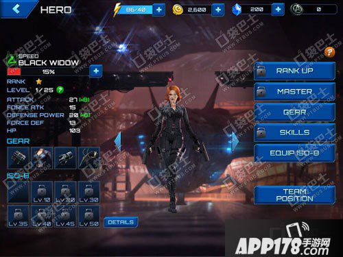 在游戏登陆界面,点击左下角的team按钮,点进去之后就可以查看我们的队伍中都有哪些超级英雄并且每一个超级英雄都有哪些能力了。