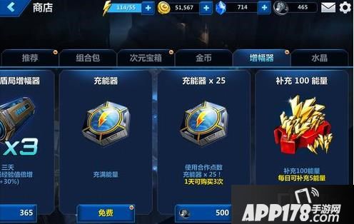 在商店中每天都可以免费使用一次充能器,使体力恢复满。也可以使用合作点数购买充能器,每天可以购买3次。另外水晶也可以购买能量,不过这个就不太推荐了。