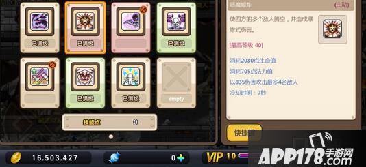 恶魔爆炸是恶魔的主动技能,需要大家把“黑暗审判”这个技能升级到20级,不然是不能学习的。