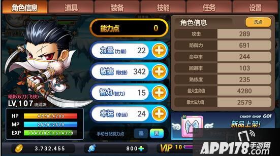 暗影双刀:这个职业在前期可以说自动挂机死升级很慢的,所以算是一个很磨大家性子的一个职业。作者在玩双刀的时候,一直都是全敏加点,不管是现在V10也好,还是之后的V12也罢。技能也都是个人看着点的,喜欢哪一个六转的技能,就顺着向前点。很多玩家也许会说:全敏的双刀没有伤害,这是一个问题,但是个人觉得大家可以在到达满级之后再洗点。毕竟在前期防御是很重要的,而且在角色到达蘑菇城的时候,又是一次高防御要求。所以作者在玩双刀的时候,就是全敏加点。