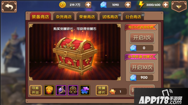 装备商店需要花费钻石或者觉醒钥匙来开启宝箱