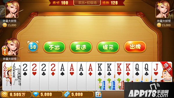 3人玩,一副牌54张,一人17张,留3张做底牌,在确定地主之前玩家不能看底牌(3张底牌在屏幕正上方扣着显示)。确定地主后,底牌亮出,显示在屏幕正上方。