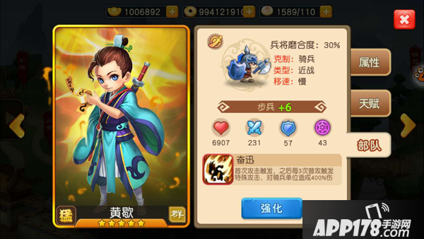 黄歇年轻的时候曾四处拜师游学,见识广博,以辩才出众深得楚顷襄王的赏识。黄歇作为一个猛将型的武将绝对不容小觑。从星级上可以看出,黄歇作为一个5星武将,战力达到了1573。资质则是达到了92点,其他三围属性中武力值达到了94,非常符合春申君的身份!