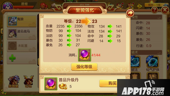 每个坐骑本身都会自带额外的附加属性,如果选择这匹坐骑出战,那么将会对我们的角色属性的提升提供很大帮助。坐骑可以被强化,强化后属性也会随之得到提升。坐骑强化将会消耗普品升级丹,每提升10级会有一次进阶的突破。