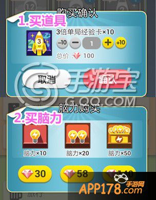 与角色类游戏不同,《脑力达人》中钻石的作用目前仅仅局限在购买道具和脑力方面。