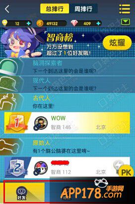 想加好友我们只要打开智商榜,看到下面就是加好友的地方啦!大家可以按照地区或者在全国范围内选择。