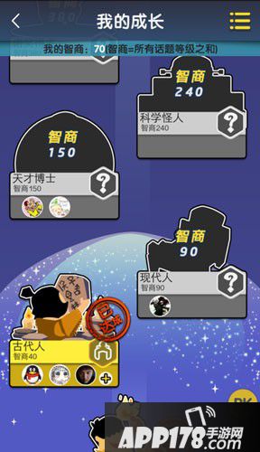 1、游戏中大大小小的话题一共有549个,玩家并不能很快的全部挑战每个话题,但是想要快速提升智商的话,尽量不要一直在一个话题答题,一直换话题来,前期升级都是很快的。