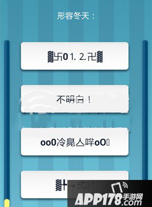 第4个:也是符号一堆符号,可以看出来的字只有一个,应该代表的是大写数字一类的意思,不过貌似和冬天没啥关系啊!那么答案就是第3个了!
